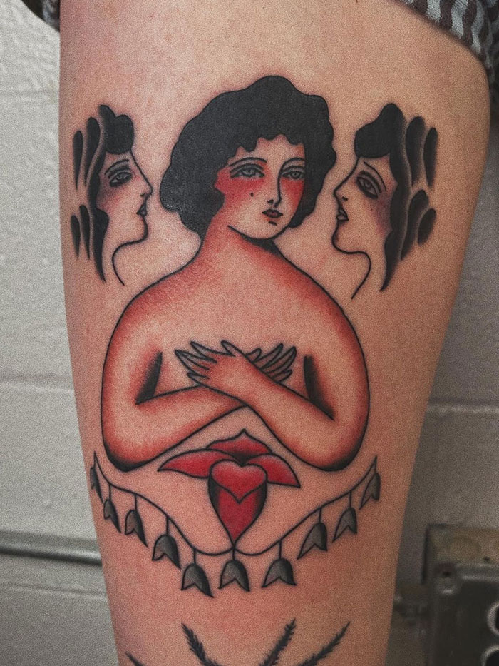 When Phoebe isn’t tattooing, she’s probably hanging out with her two cats Banjo and Steve, reading, riding her bike, cooking, or outside playing with flowers in her garden.